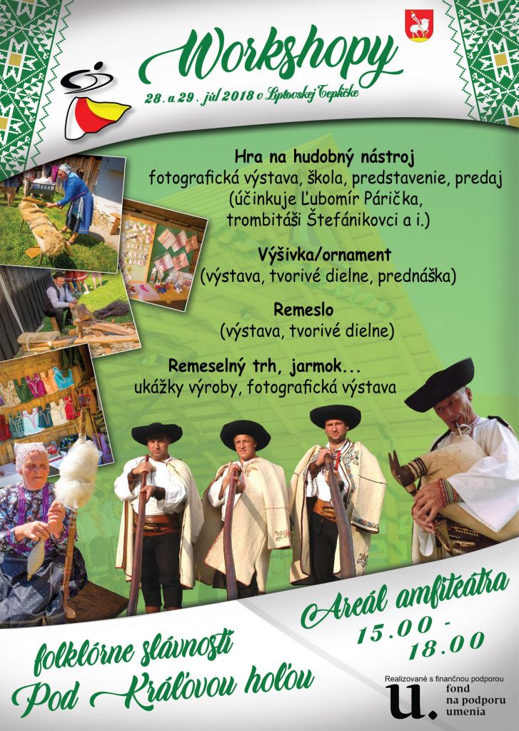 Krásu tých najvzácnejších hudobných nástrojov zapísaných v nehmotnom kultúrnom dedičstve Slovenska ukážu Trombitáši Štefánikovci a inštrumentalista Ľubomír Párička. Počas folklórnych slávností Pod Kráľovou hoľu sú pre návštevníkov pripravené workschopy zamerané na hudobné nástroje, remeslá, ornamenty a výšivky. Zhliadnuť môže výstavu vyšívaných košieľ, fotografií k téme muziky Vladimíra Lindera, výstava fotografií k remeslám a tradíciám Milousa Chaba. Divácky atraktívny je aj nedeľný alegorický sprievod obcou s ukážkami tradičných remesiel, krojov a ochutnávkou jedál.