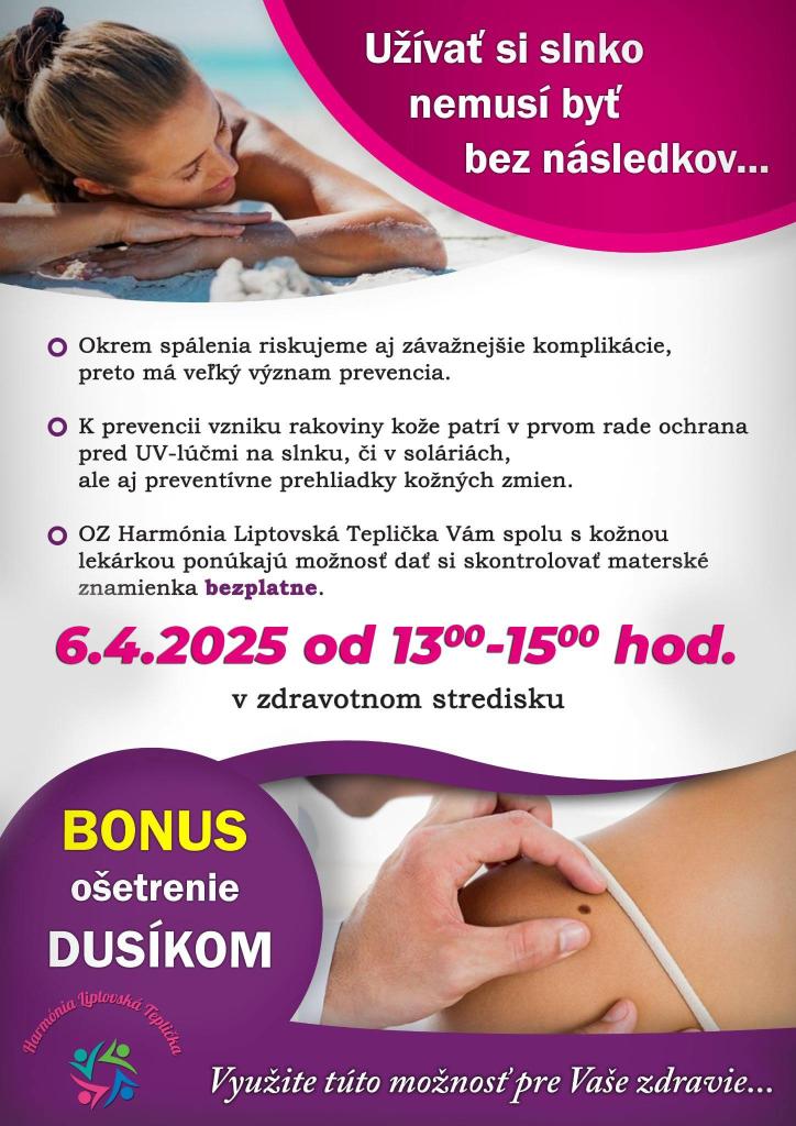 OZ Harmónia pozýva na preventívne vyšetrenie znamienok - 6. 4. 2025