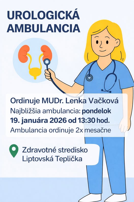 V urologickej ambulancii sa bude ordinovať 19. 1. o 13.30 hod.